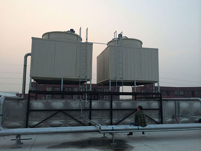 2台450吨方型逆流塔安装施工中