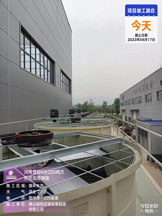 河南登封6台200吨方形逆流塔拼装